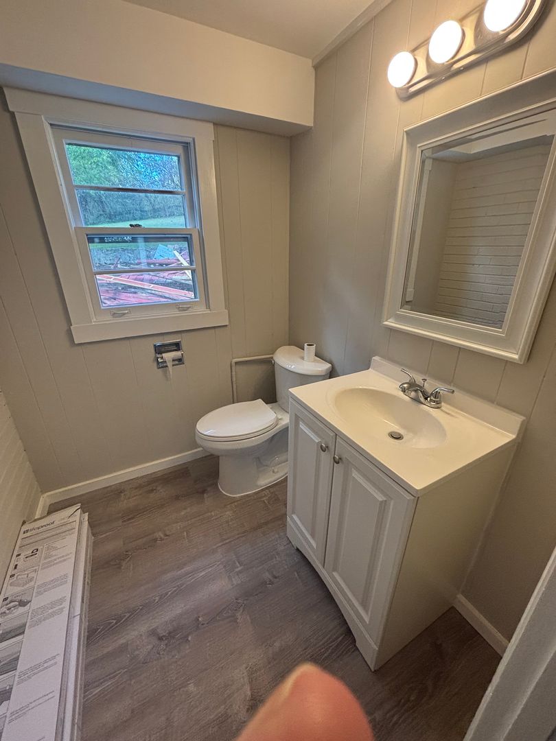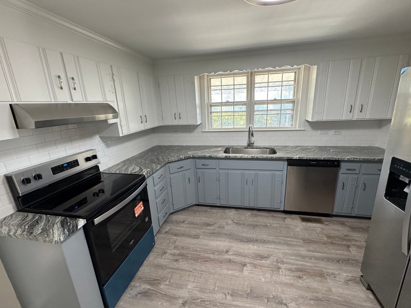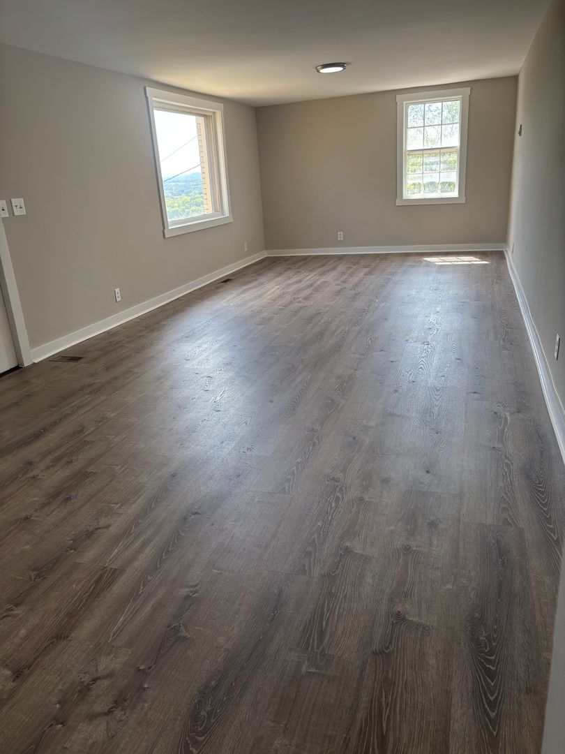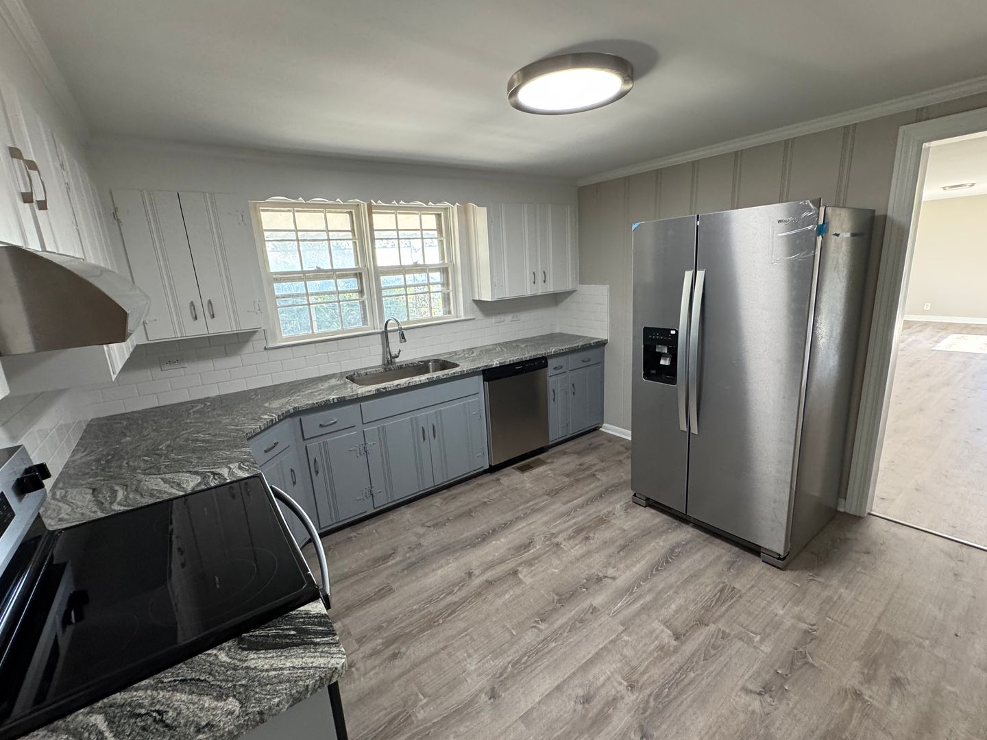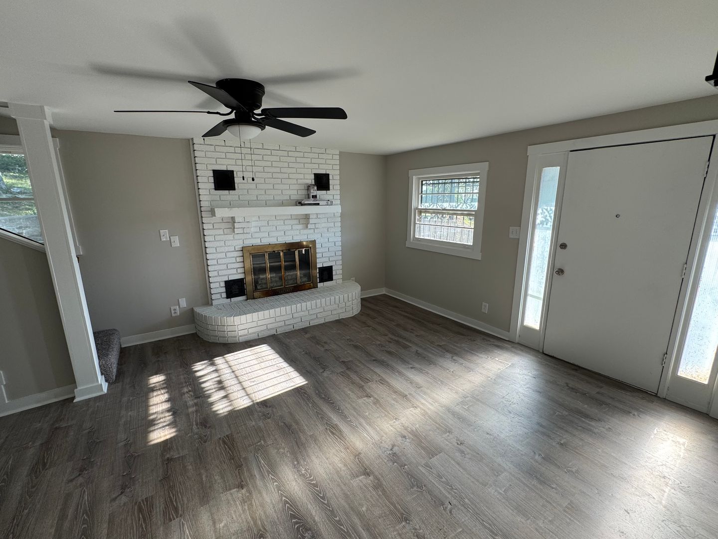 This is a one level house with new paint and LVP flooring. New bathroom, remodeled kitchen with granite countertops and new appliances. Has main living room with large window and expansive view of the city. The side living room has a fireplace, half bath and laundry room.