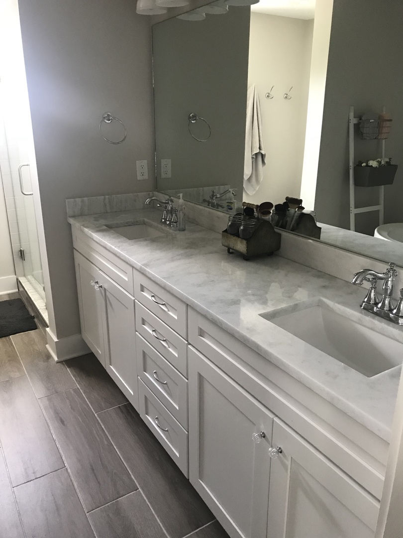 Great shotgun style house with 3 bedrooms, 3 bathrooms, 2 car carport with garage door. Extensive hardwood, great tile in kitchen and baths! Wide plank floors , marble countertops, custom cabinets and master up with vaulted ceiling and upstairs porch! This won't last long!!