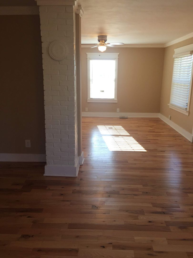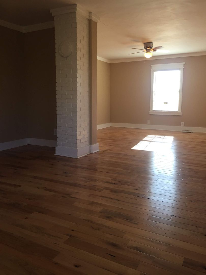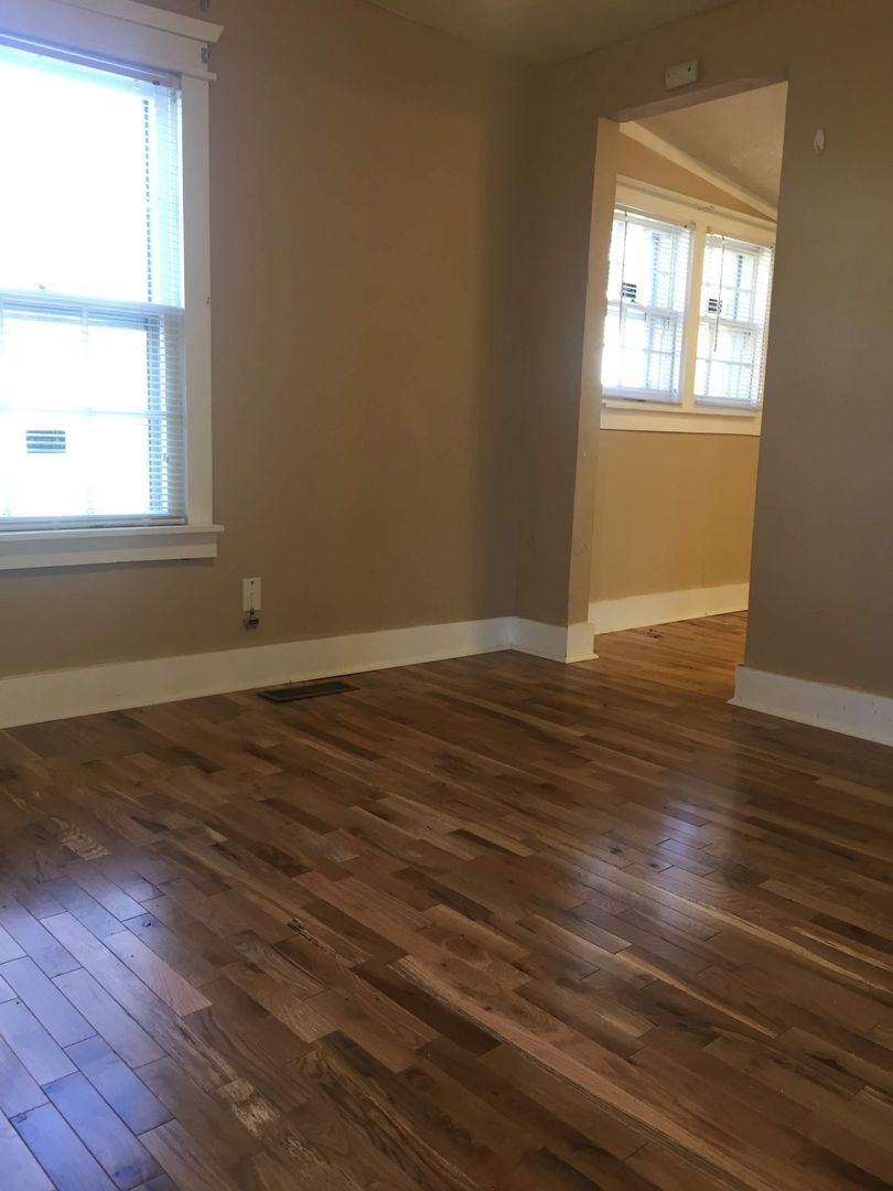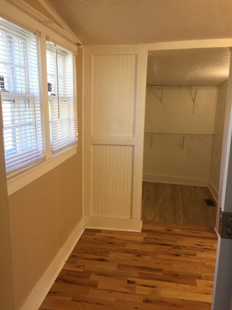 This is a unique older house that has been updated. It has two bedrooms with new hardwood. Nice hardwood floors in living room and dining room area which can be used as an office. Spacious kitchen with island and new granite countertops! Separate laundry room with washer and dryer connections. The back yard is fenced. Pets allowed case by case with additional pet deposit and monthly pet fee. Lawn cutting is included in the lease!