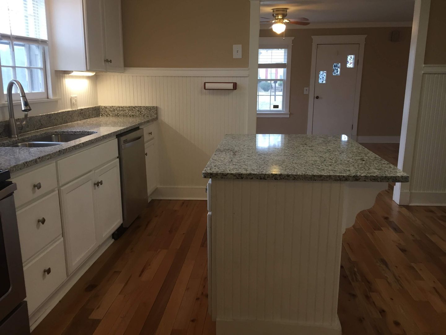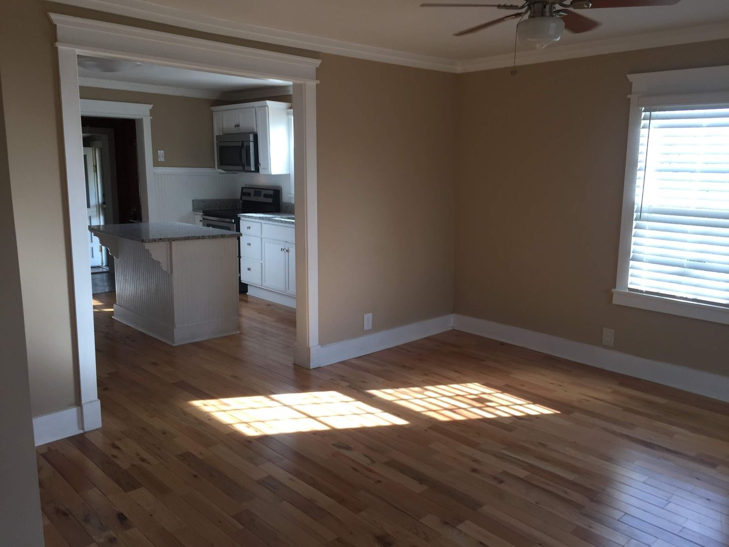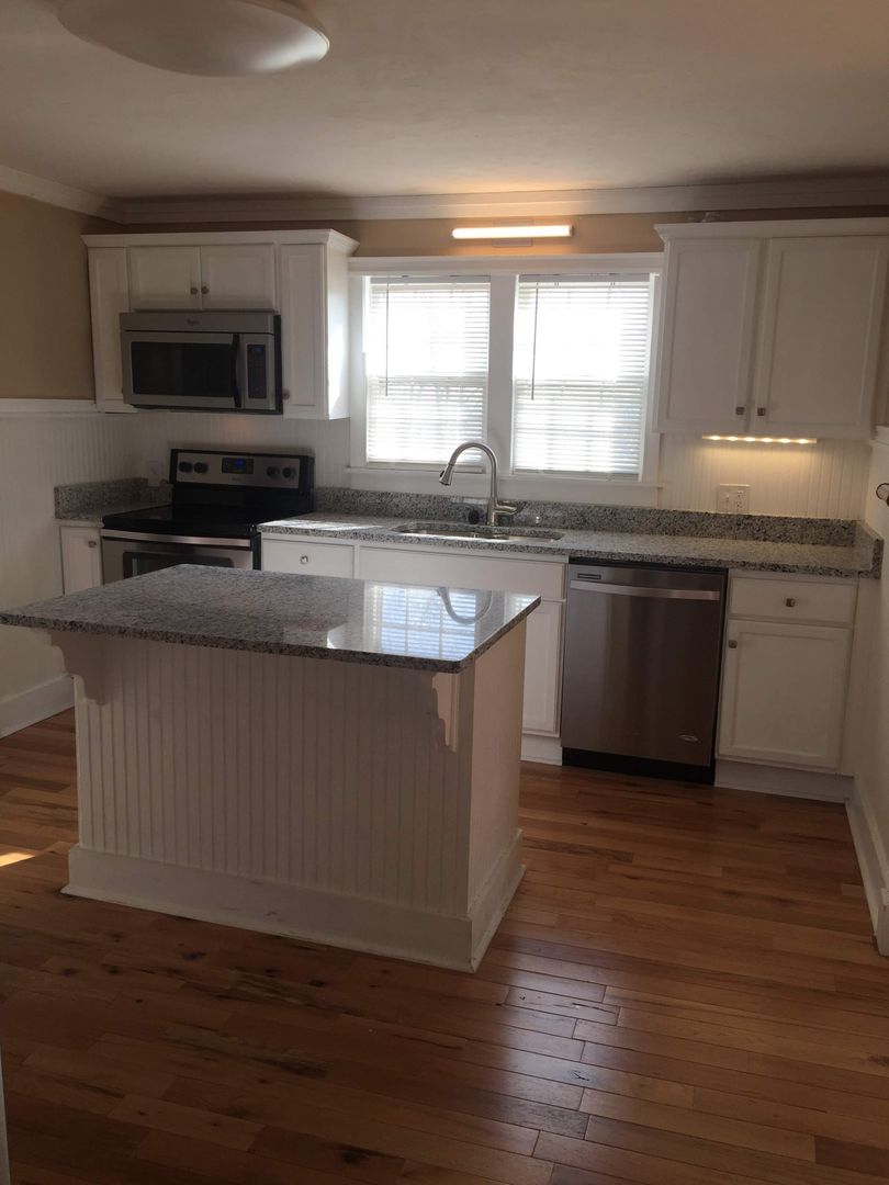 This is a unique older house that has been updated. It has two bedrooms with new hardwood. Nice hardwood floors in living room and dining room area which can be used as an office. Spacious kitchen with island and new granite countertops! Separate laundry room with washer and dryer connections. The back yard is fenced. Pets allowed case by case with additional pet deposit and monthly pet fee. Lawn cutting is included in the lease!